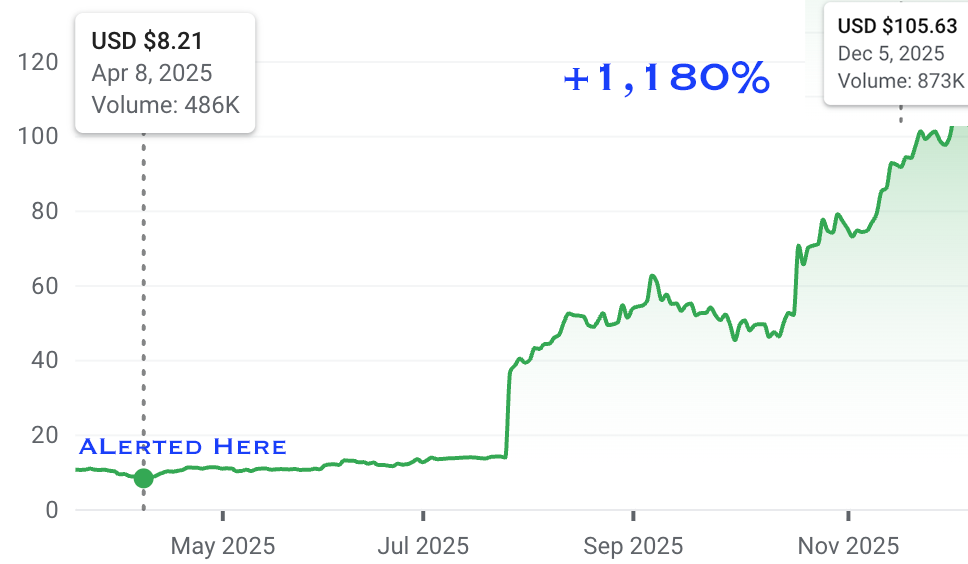CELC surged past $105 per share—a gain of over 1,000% in just a few months.